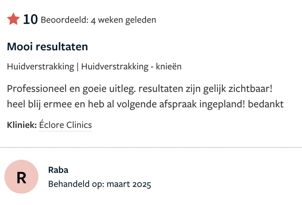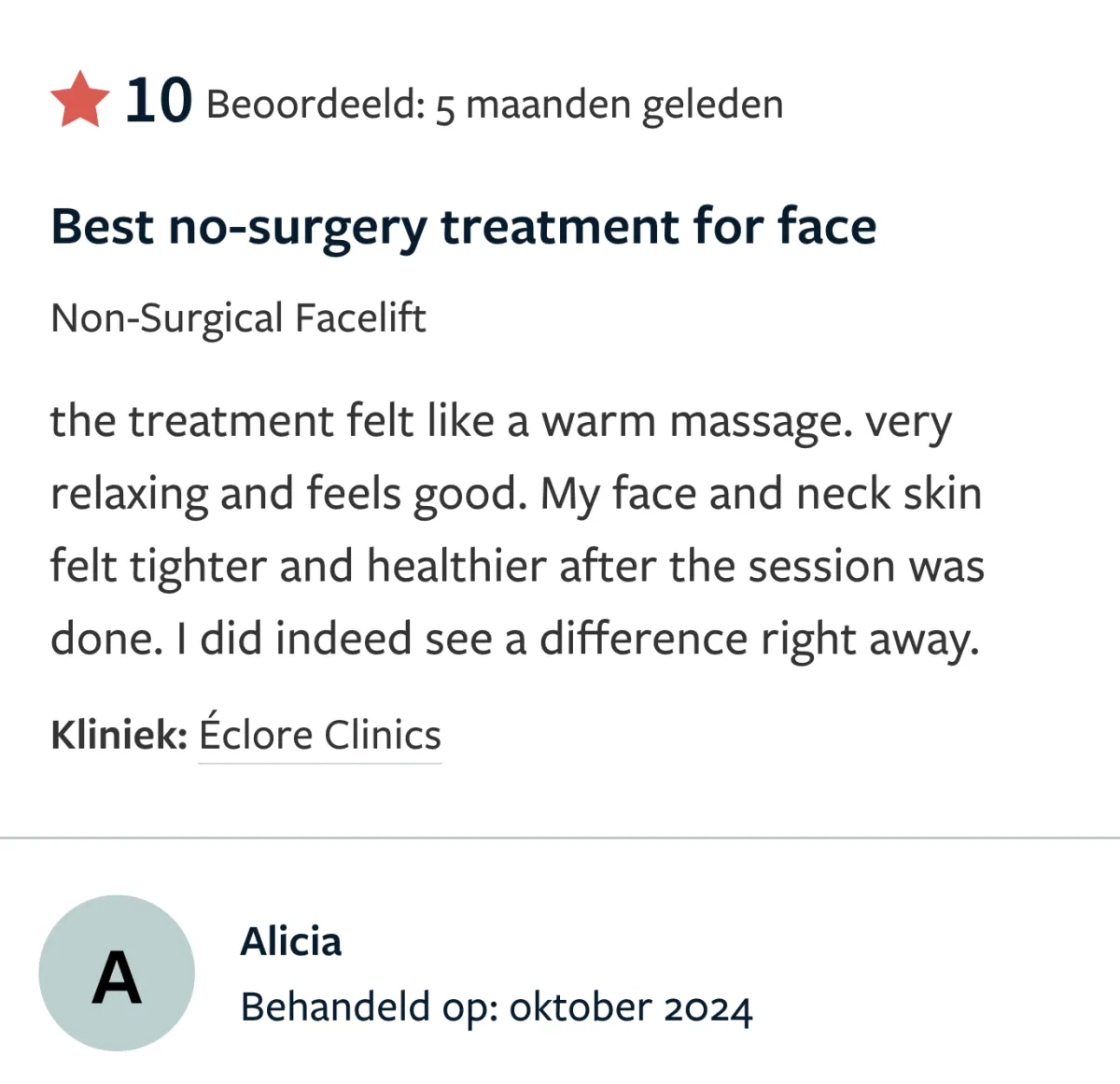 Radio Frequency: Sommige klanten merken direct na de eerste sessie al verbetering, met verdere verbetering na meerdere sessies indien nodig.