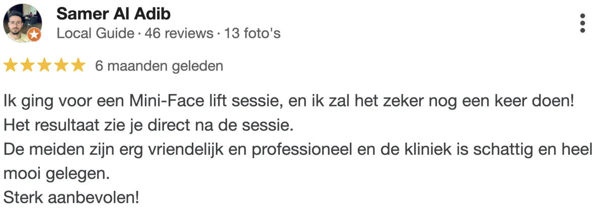 We plannen een follow-up afspraak in om je voortgang te evalueren en de resultaten te vergelijken met de vóórfoto’s. Indien nodig adviseren we aanvullende sessies voor langdurige en optimale resultaten.